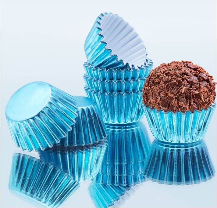 Formas de papel laminado de cor azul bebé lisa para brigadeiros, bombons, docinhos, trufas, salgados, entre outros. Uma coleção de cores vivas que vão dar a toque especial na sua festa. Medidas: 2,20 cm diâmetro x 1,60 cm altura.